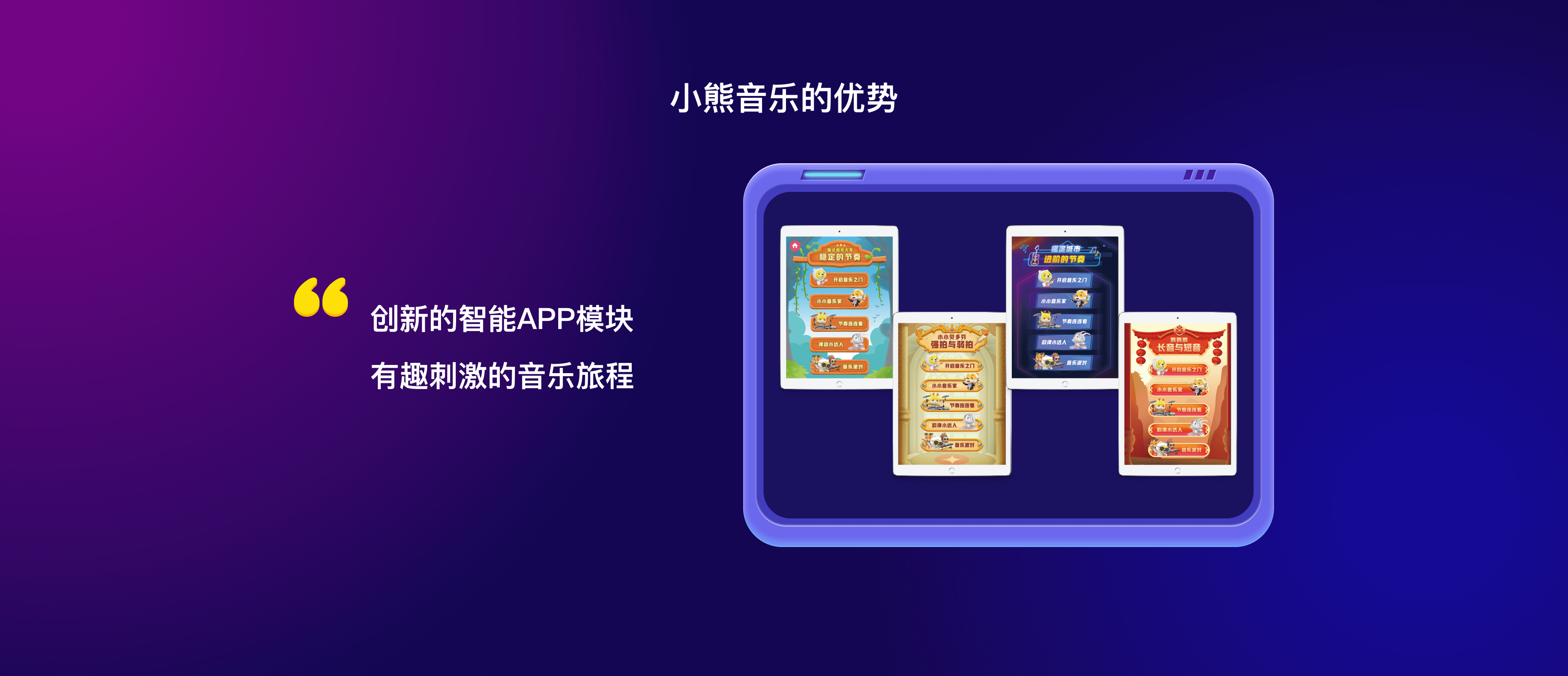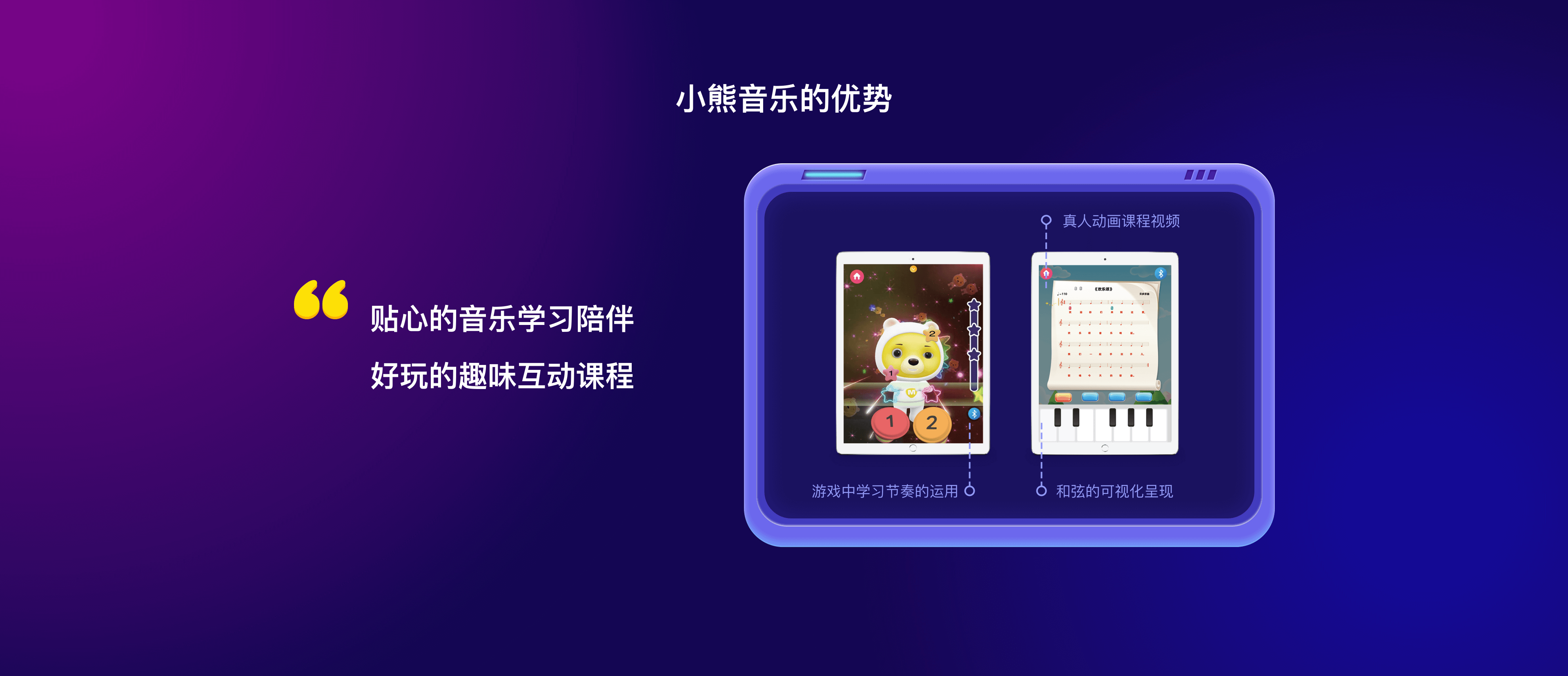 采用智能识别技术,结合趣味动画游戏教学,旨为儿童提供专属音乐学习体验。